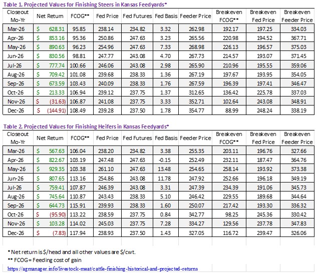As 2026 continues to progress, it is useful to pause and assess margins in the beef-cattle industry. Recently, the KSU Cattle Feeding Returns estimates were updated, providing the latest insight into margin patterns in the feedlot sector.